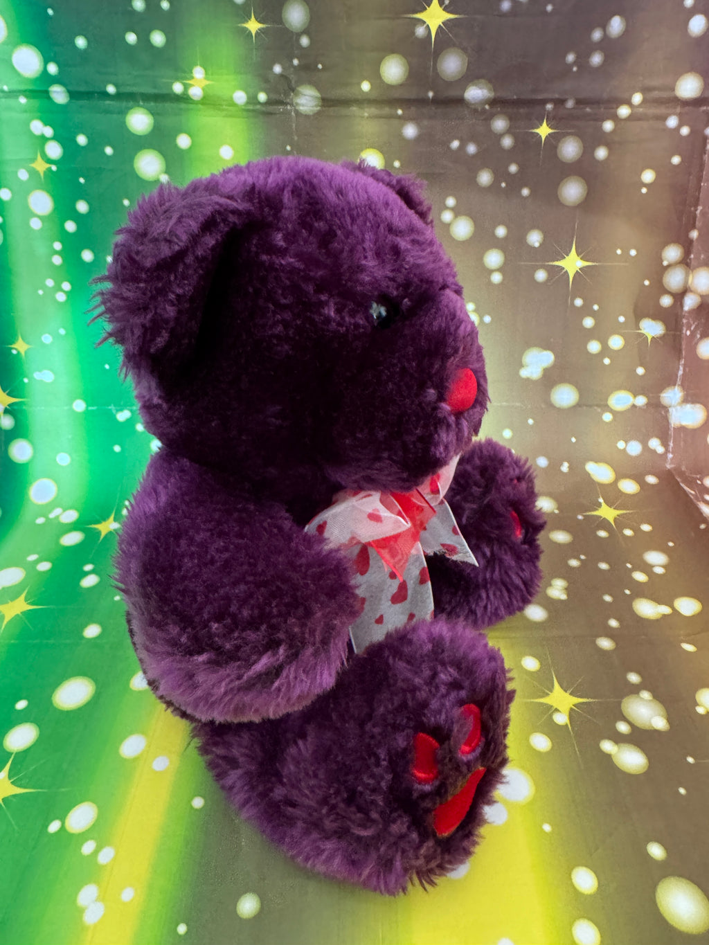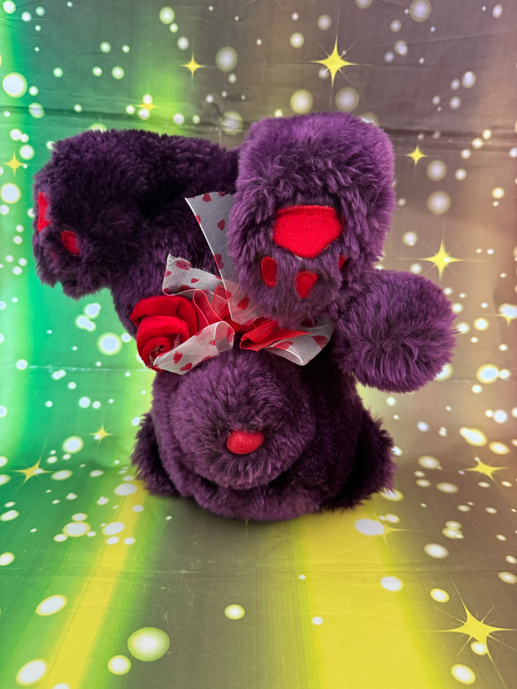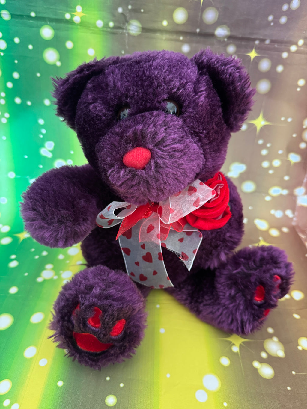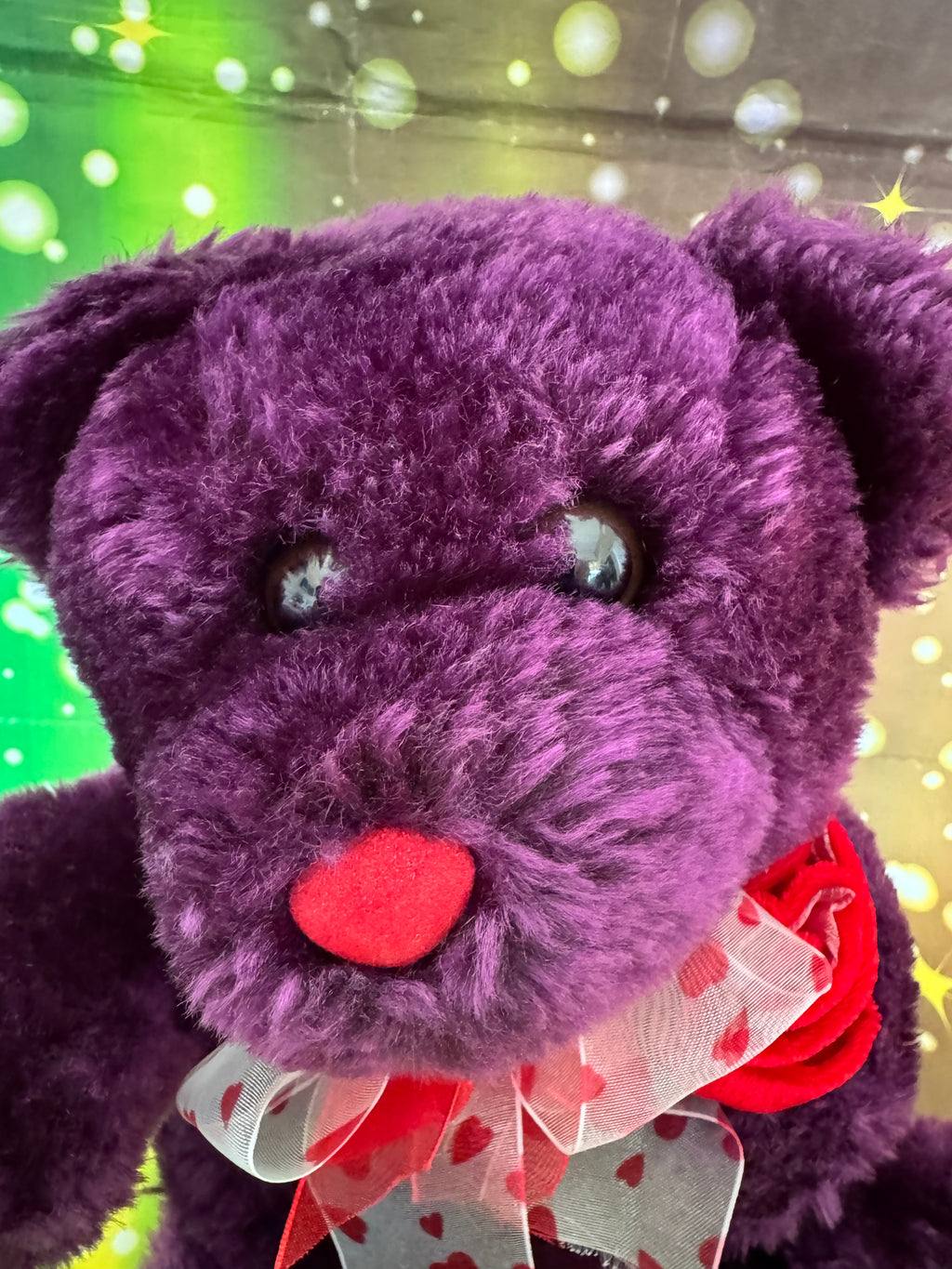 Rosabelle is a soft, purple teddy bear who looks like she came straight from a fairy tale. She holds a magical rose that never wilts — a gift for someone truly special.